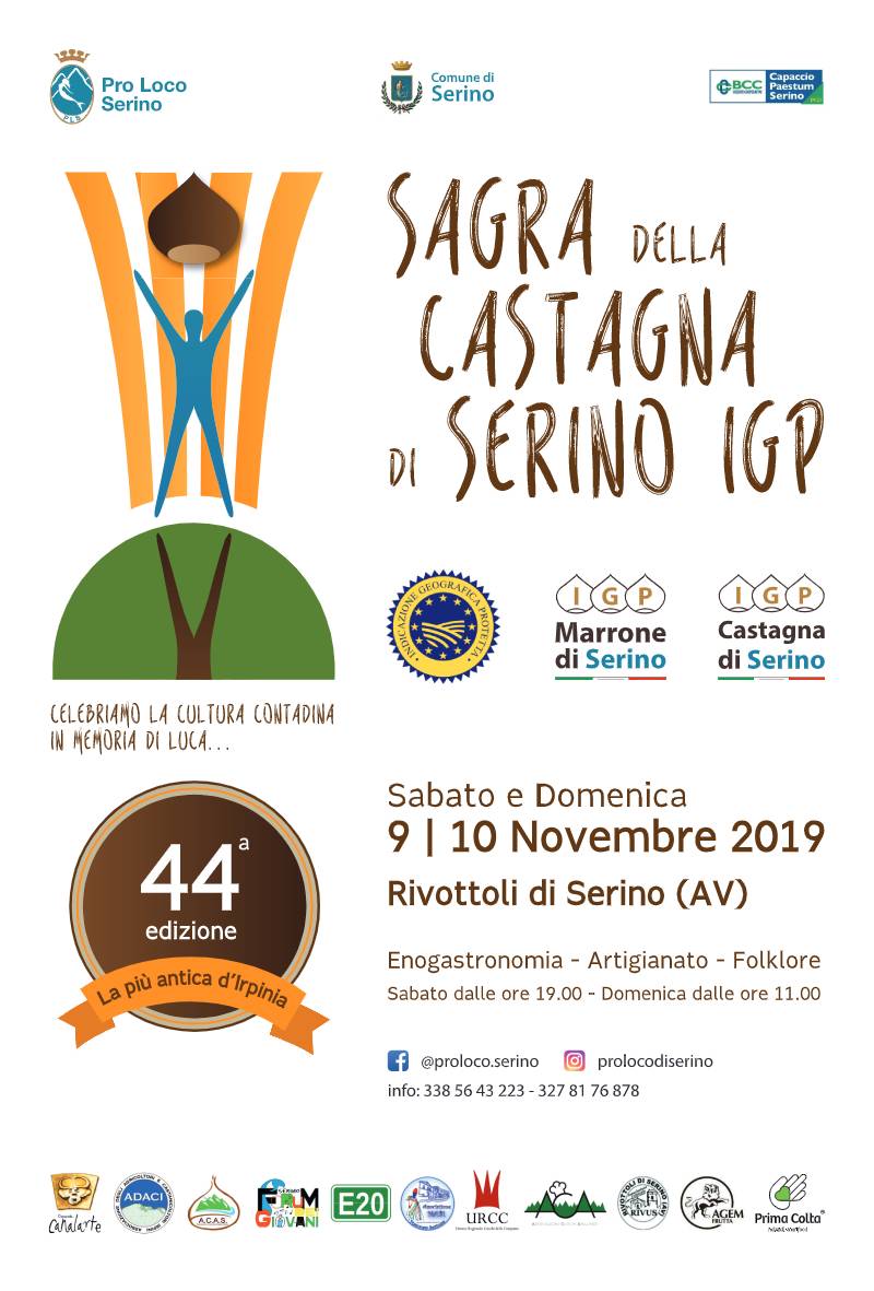 Si rinnova, per il 44esimo anno, l’appuntamento con la “Sagra della Castagna Igp di Serino”. La kermesse è in programma sabato 9 e domenica 10 novembre 2019 presso la frazione Rivottoli